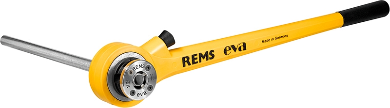 - Rems Eva Set R 3/8"-1/2"-3/4"-1"-1 1/4" LH. Ручной резьбонарезной клупп для трубной резьбы R 3/8", 1/2", 3/4", 1", 1 1/4" LH. Для левой резьбы. Один храповый рычаг для всего рабочего диапазона. Быстросменные резьбонарезные головки и плашки для левой трубной конической резьбы ISO 7-1, EN 10226 (DIN 2999, BSPT) R 3/8", 1/2", 3/4", 1", 1 1/4" LH. В прочном стальном чемодане.