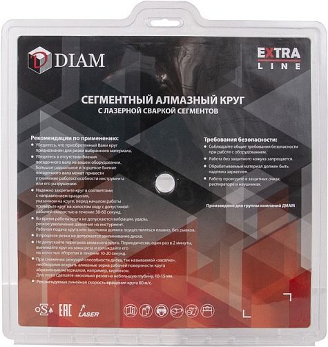 – С водяным охлаждением: предназначен для работы с водяным охлаждением, использование без подачи водяного охлаждения может привести к выходу из строя, за исключением, когда предназначен как для сухой, так и для мокрой резки - Корейские технологии: изготовлен по технологиям и под контролем ведущих производителей алмазного инструмента Южной Кореи, специально по заказу ГК Диам
